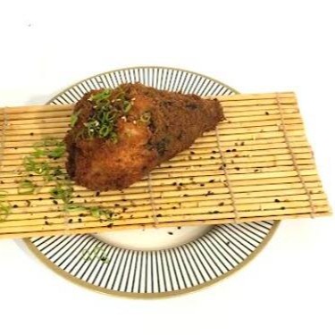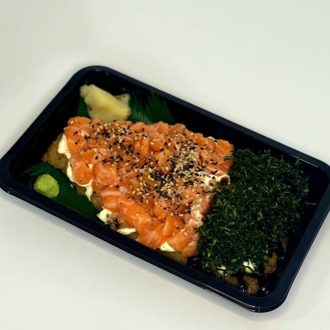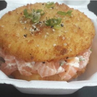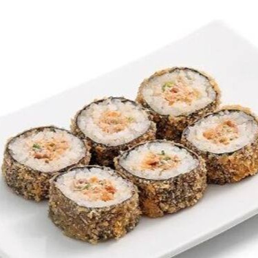 Arroz japonês e nori empanados na farinha panko, recheado com cream cheese, salmão, couve crispy, tarê e gergelim. ( cebolinha opcional )