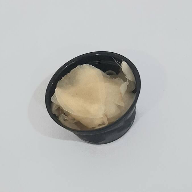100g de shari (arroz japonês), 50g de salmão, nori e gegelim.