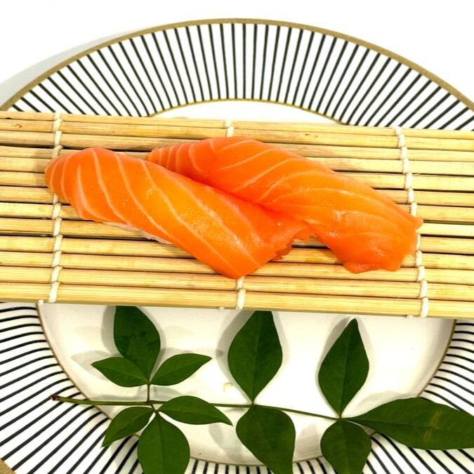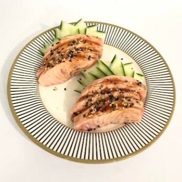 8 Fatias de Salmão Maçaricadas, com cobertura de Pimenta Sweet Chilli e Gergelim.