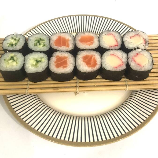 8 Hossomaki de Pepino, 8 Hossomaki de Salmão e 8 Hossomaki de Kani.