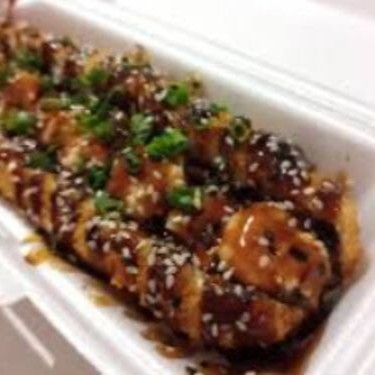 100g de Shari, Tilápia à milanesa, Pepino Crispy e Molho de Pimenta Sweet Chilli.