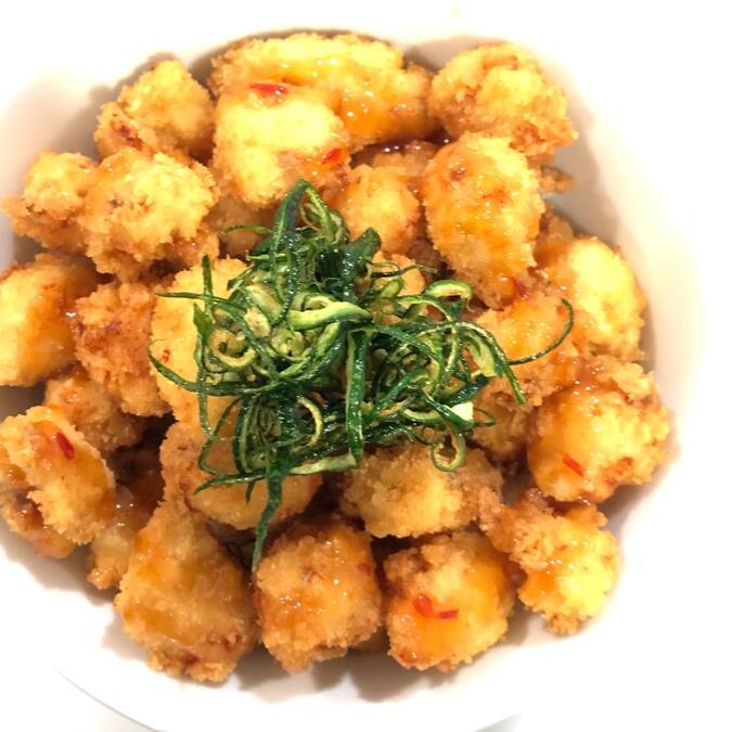 300g de Tilápia à Milanesa, Pepino Crispy e Molho Sweet Chilli.