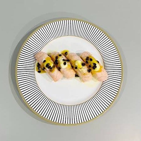 Niguiri De Salmão Maçaricado Com Geleia De Maracuja (8 Peças)