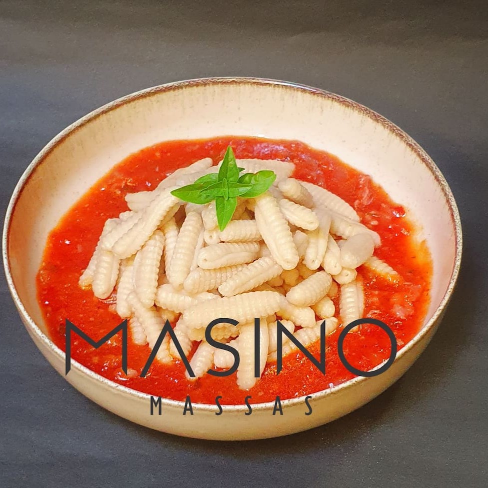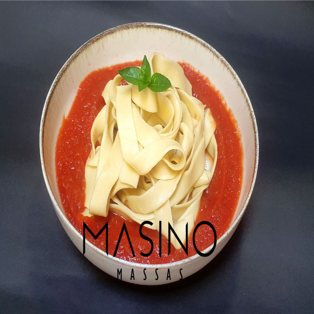 Sabe aquele Dia que você só quer uma comida que te abrace, e seja feita com muito amor? É esse macarrão! Tiras largas e curtas de massa, cortadas na "bicicleta".