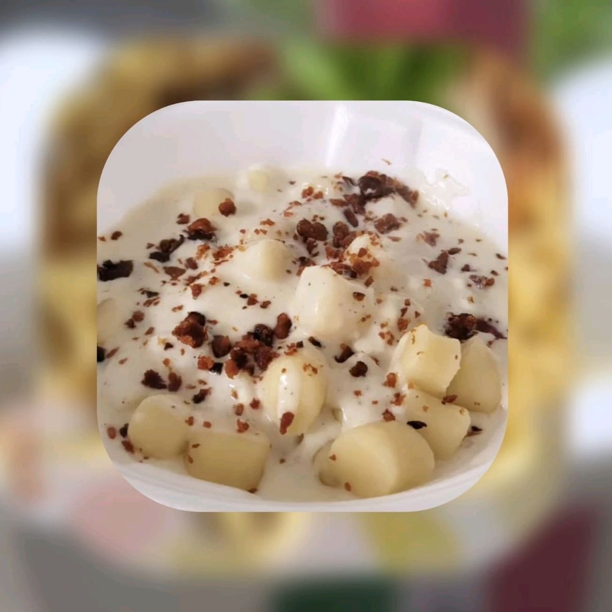 Nhoque Alla Romana Com Molho Branco E Bacon.