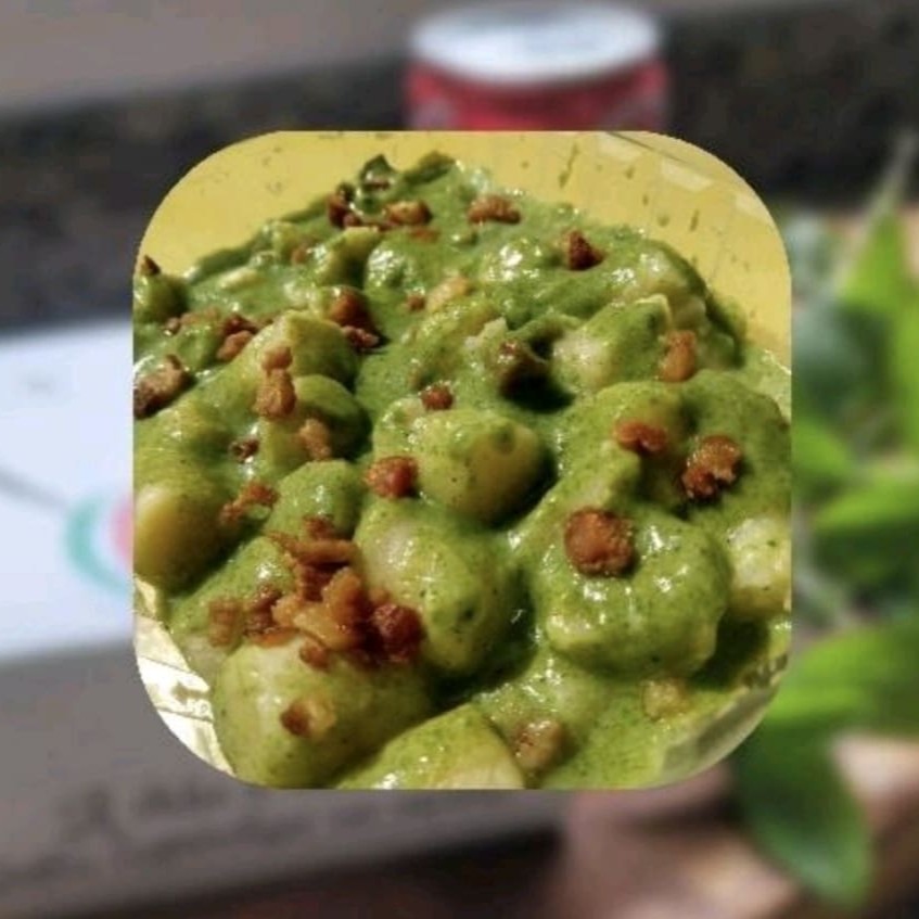 Nhoque Alla Romana Com Molho De Espinafre E Bacon.