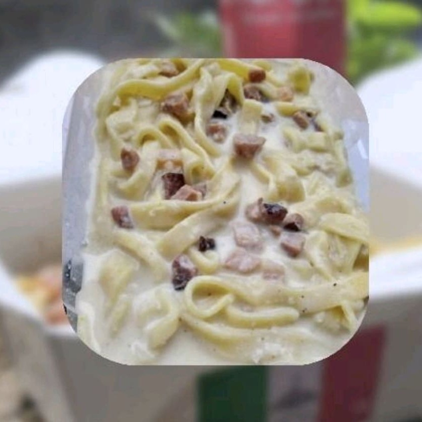 Macarrão Artesanal Com Molho Branco E Bacon.