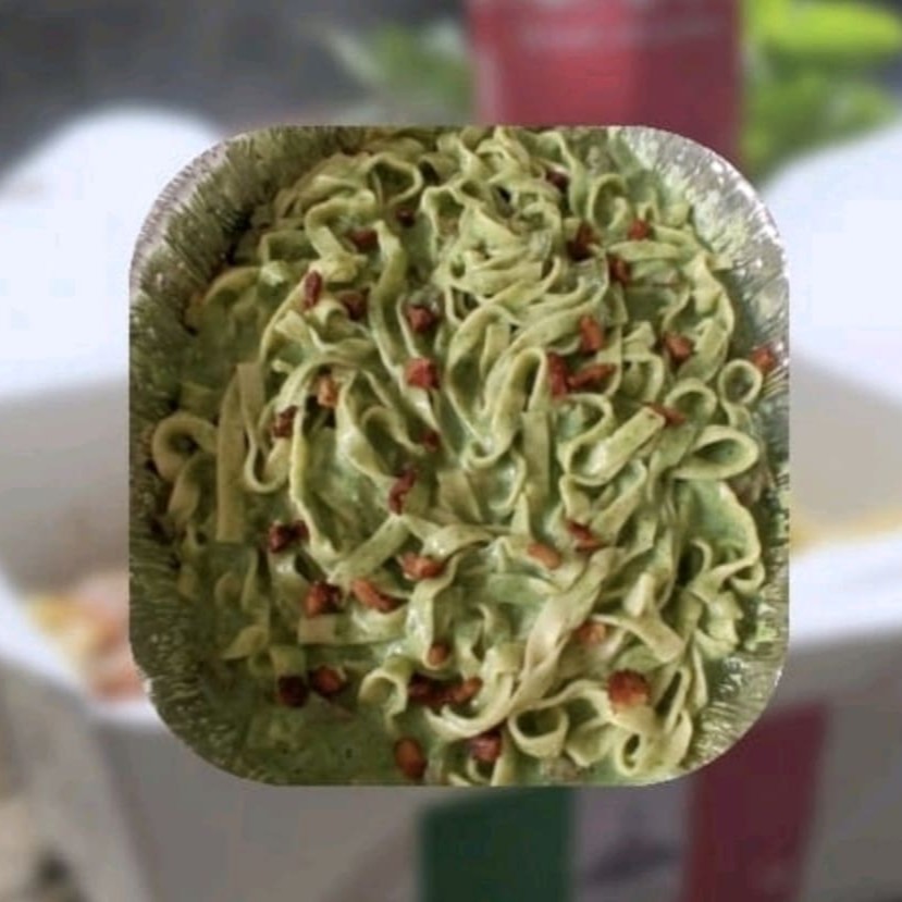 Macarrão Artesanal Com Molho De Espinafre Com Bacon.