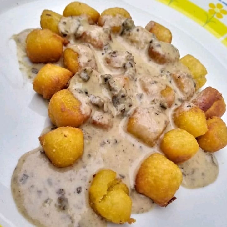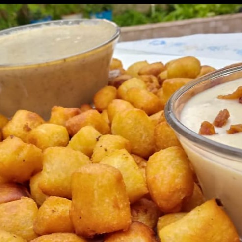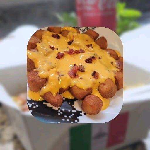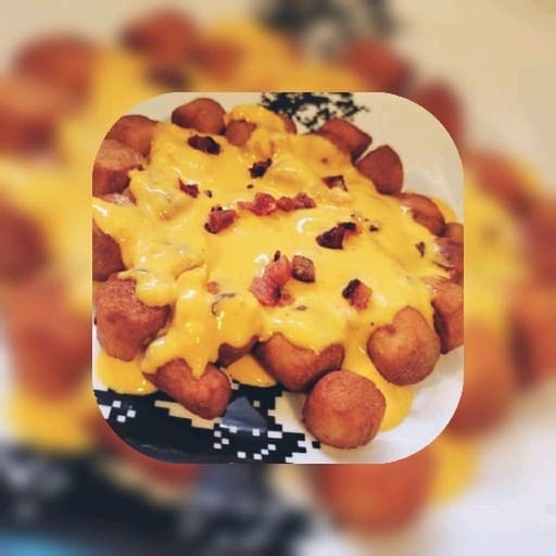 Nhoque Frito Com Cheddar Cremoso E Bacon.