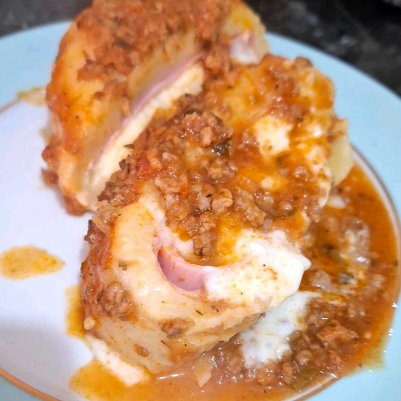 Nhoque Alla Romana Com Molho Bolonhesa.