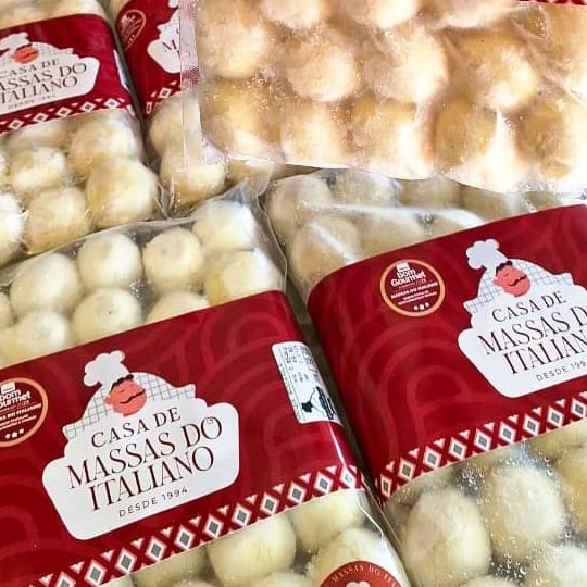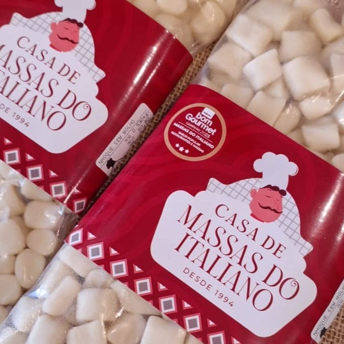 Massa de nhoque fresco e cozida, sem molho para finalizar em casa. Precisa adicionar molho. Forno 20 à 25min, forno 180 Pacotes 500g