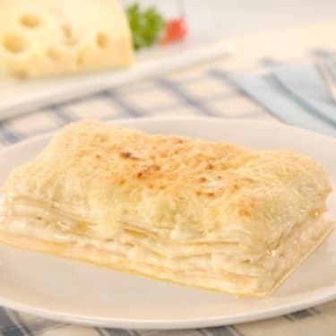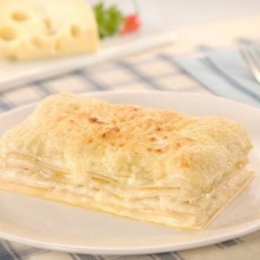 Lasanha 4 Queijos com 500g. Massa artesanal e um molho composto por quatro queijos selecionados: mussarela, parmesão, provolone e gorgonzola. Fatias de mussarela e finalizado com parmesão ralado. Embalagem para forno, basta aquecer por 25 minutos à 180ºc. Se preferir, pode retirar da embalagem e aquecer no micro-ondas. Serve 1 pessoa.