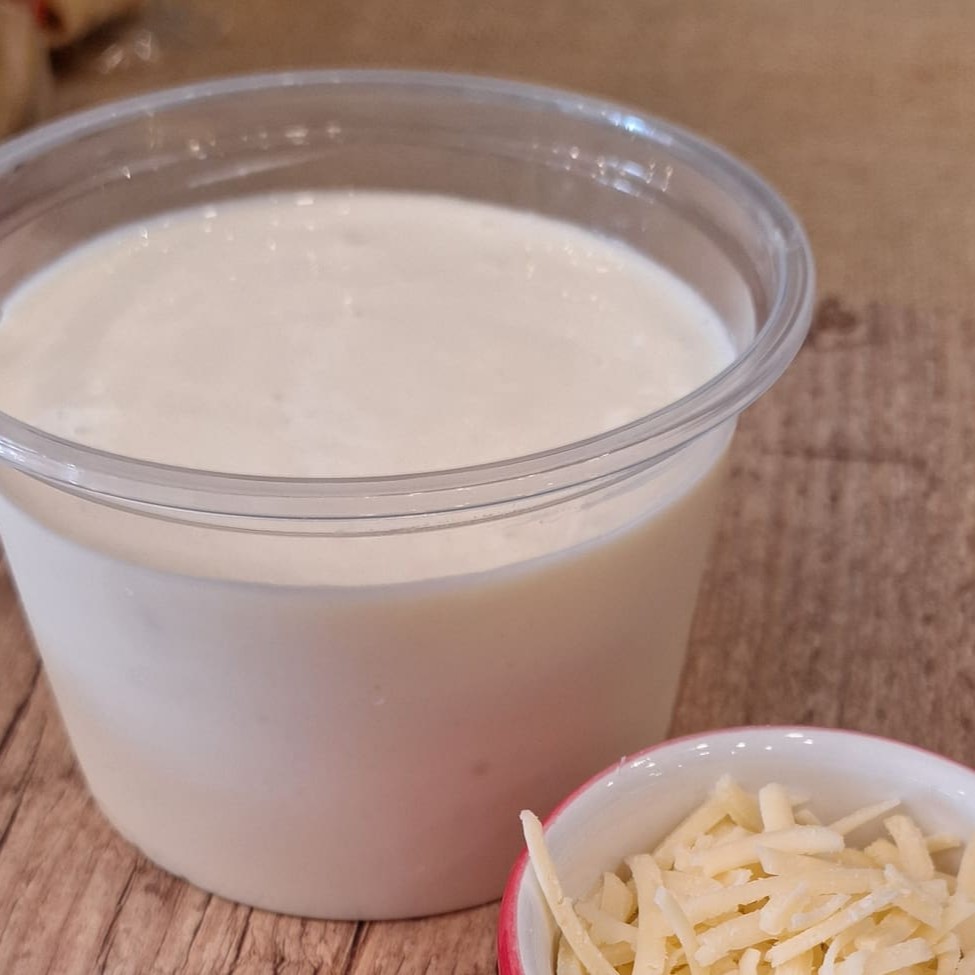 Molho frio, base de leite, com queijo queijo parmesão. Sabor suave. pote com 500g.