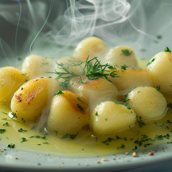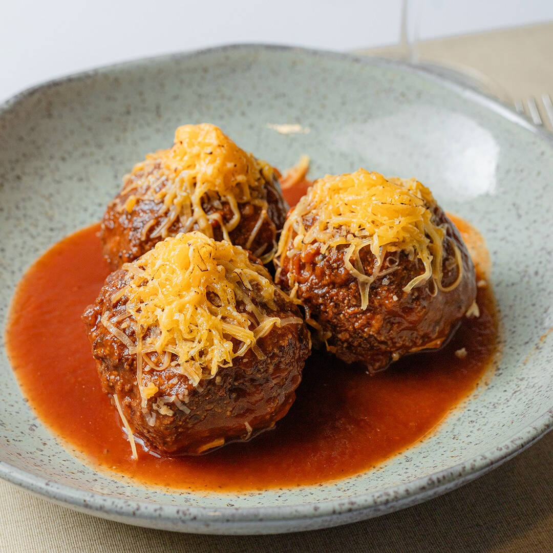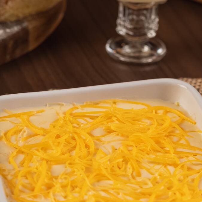Recheado com queijo ao molho 4queijos. Queijo parmesão ralado por cima.