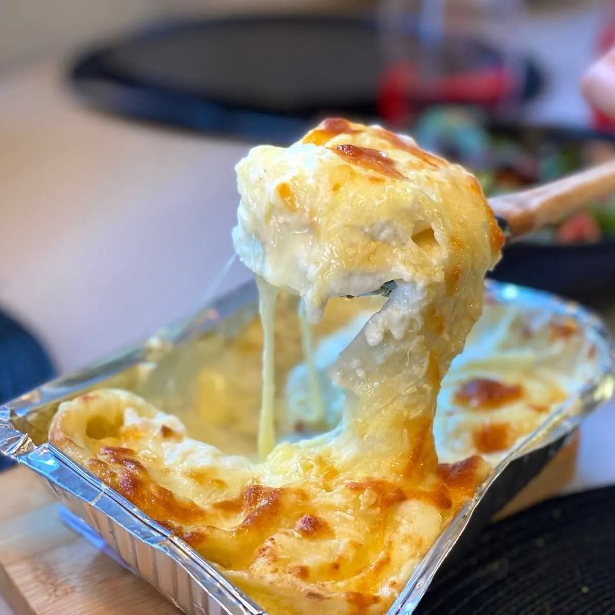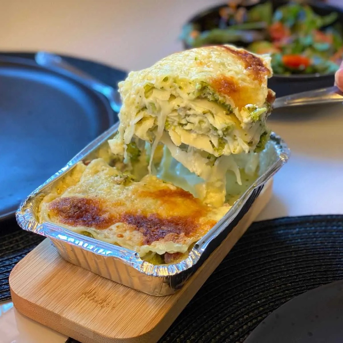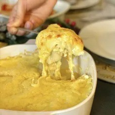 Deliciosa lasanha cremosa com mistura perfeita de queijos derretidos.