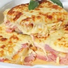 Recheado com presunto e queijo, gratinado ao forno.
