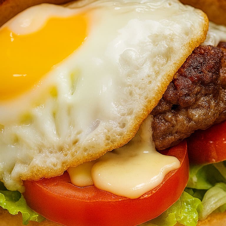 Pão, Hambúrguer Tradicional , queijo, presunto,ovo, Maionese, alface e tomate.