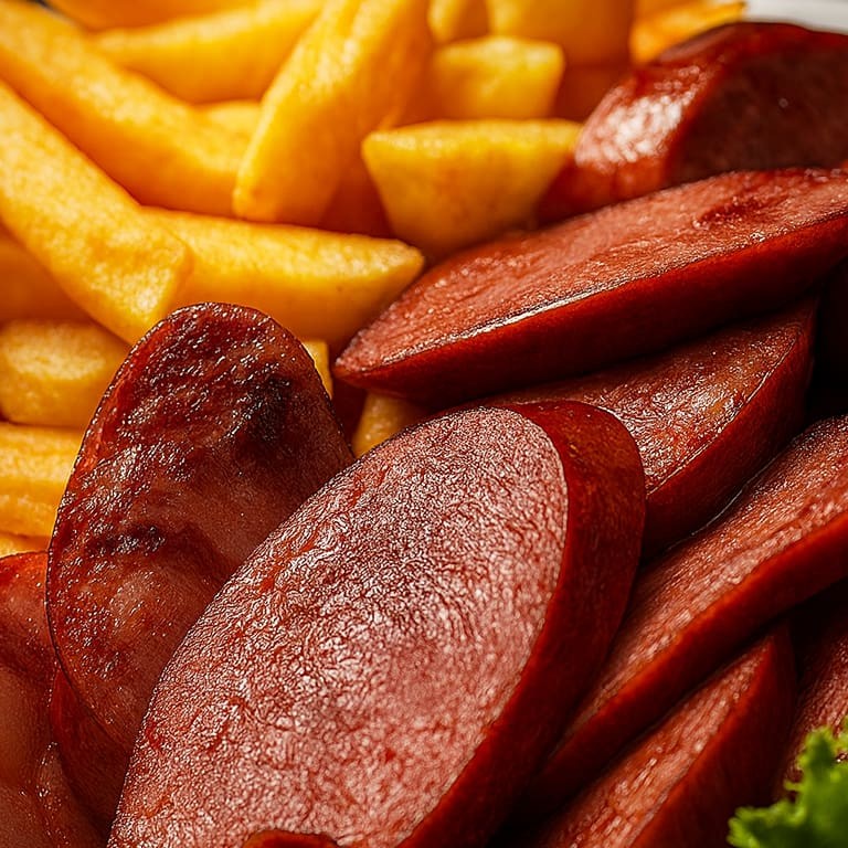 Desfrute de uma porção irresistível de batatas crocantes, perfeitamente combinadas com fatias suculentas de calabresa, criando uma explosão de sabor e textura em cada mordida 400 gramas de batata frita 300 gramas de calabresa