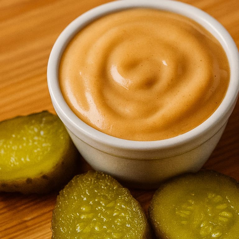 Molho a base de maionese, picles e especiarias.