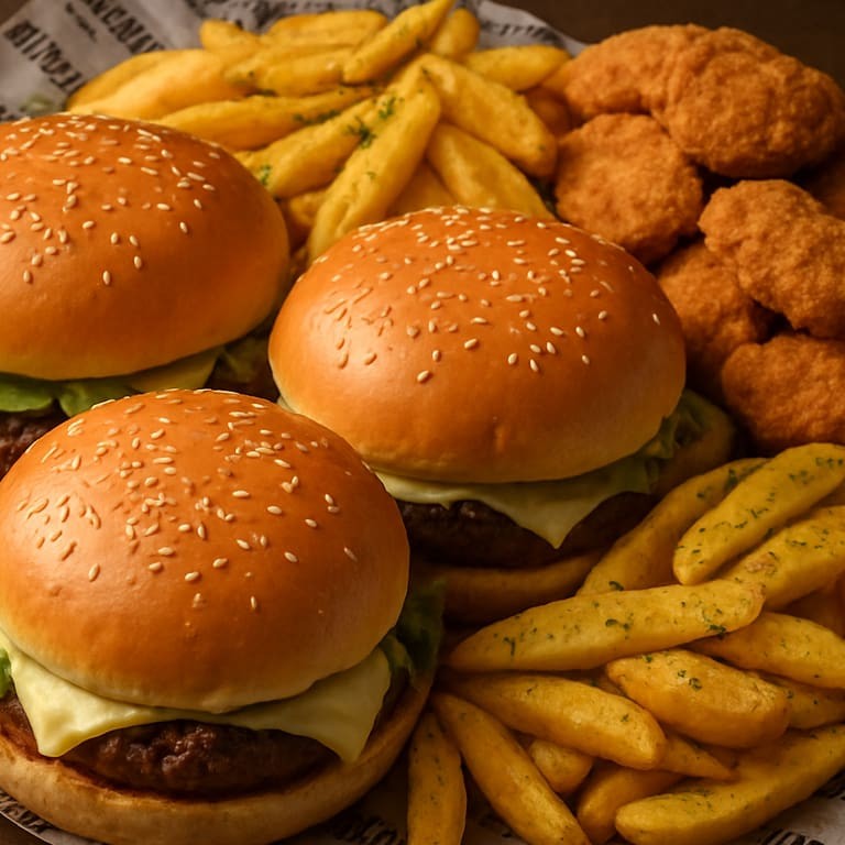 Trio 1 – 3 Salada Burgers + nuggets + batata frita. Sabor e fartura em um combo completo!