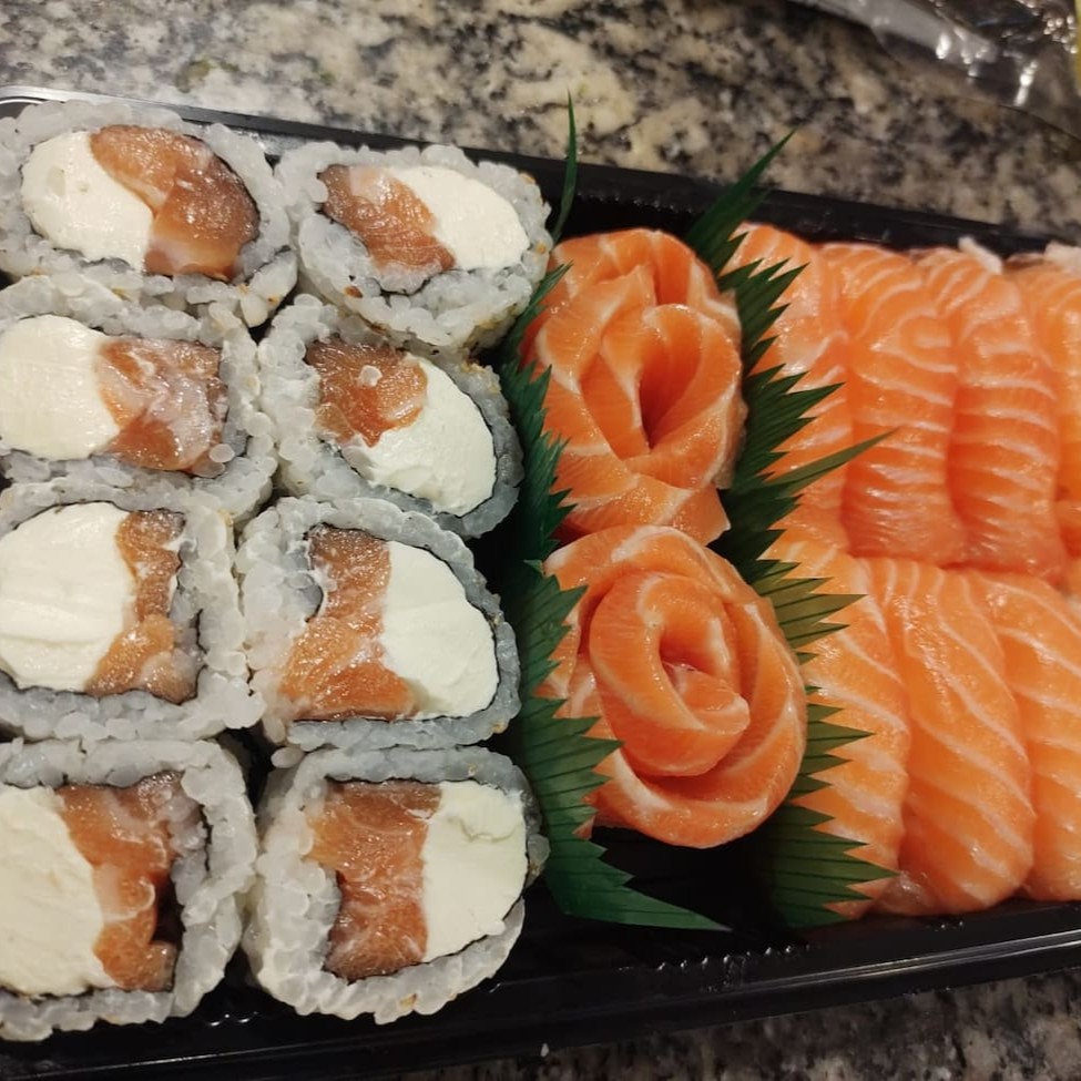 6 Sashimi selado, 6 Sashimi atum selado, 6 Sashimi tilápia, 4 Uramaki filadelfia, 4 Especial Filadelfia, 4 Uramaki califórnia, 2 Niguiri maçaricado, 2 Niguiri atum, 2 Niguiri tilapia, 4 Hossomaki salmão, 4 Hossomaki kani, 4 Hossomaki atum, 4 Hossomaki pepino, 4 Joe, 4 Joe poró.