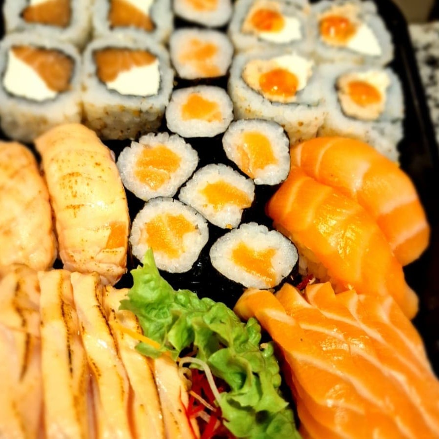 6 Sashimi salmão, 8 Uramaki filadelfia, 8 Niguiri salmão.