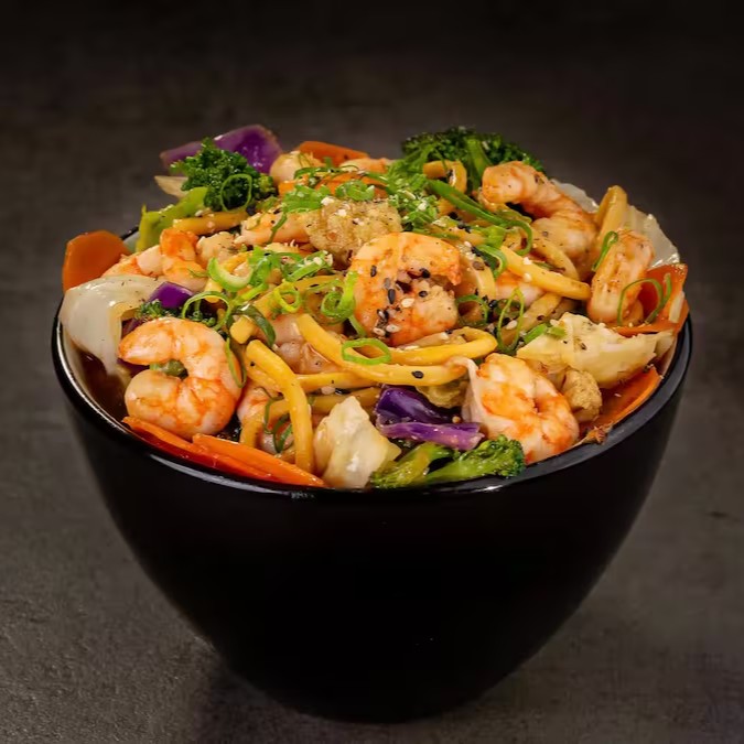 Camarões selecionados salteados com legumes e macarrão oriental, cobertos com um molho delicioso e equilibrado. Um toque sofisticado e cheio de sabor!