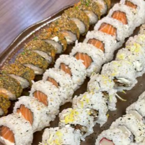 Arroz Japones Por Fora Recheado de Salmão fresco, cream cheese cremoso, Alga e Finalizado com gergelim torrado. O clássico mais pedido, sempre irresistível!