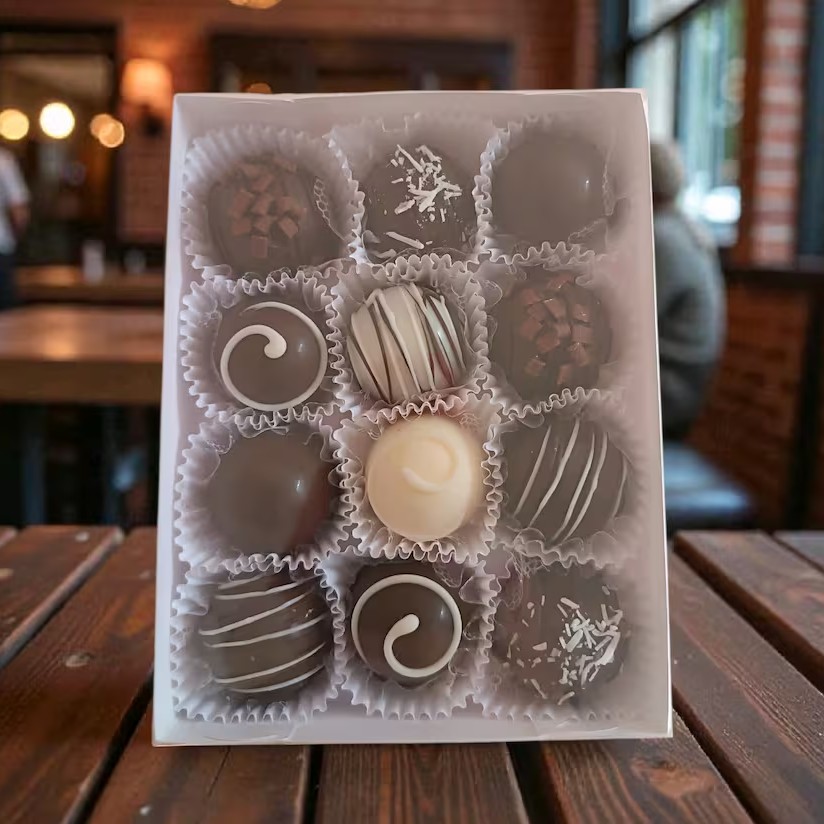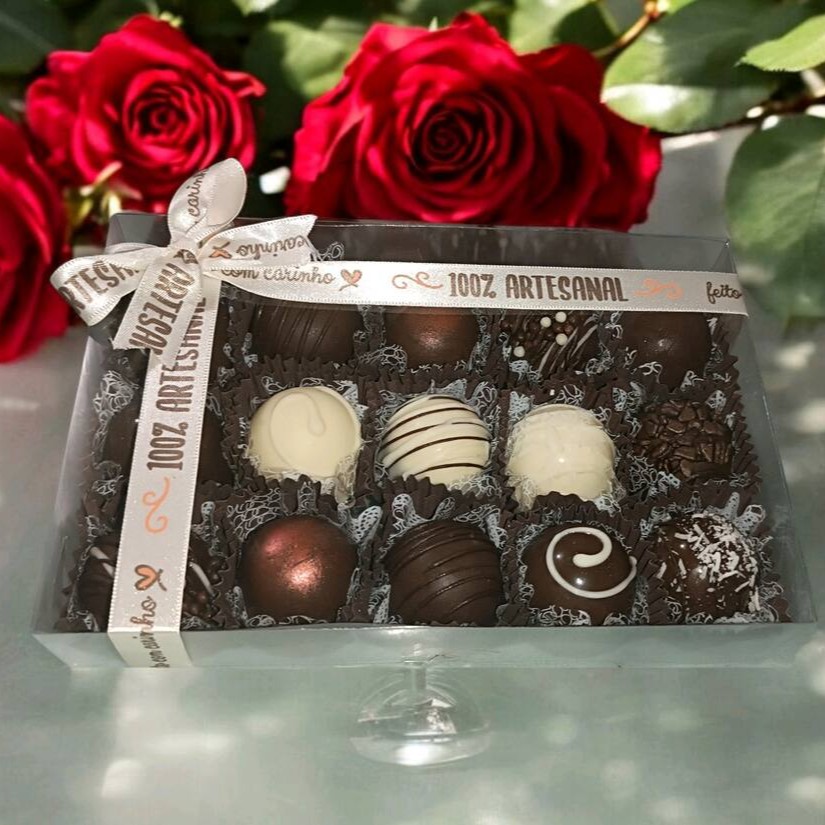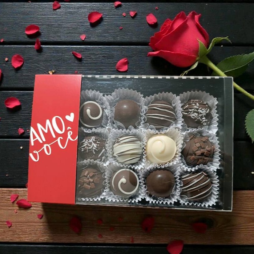 Perfeita para Presentear, Caixa com 12 Bombons Artesanais, sendo: Mousse de Ninho, Brigadeiro 50%, Prestígio, Dois Amores, Ferrero
