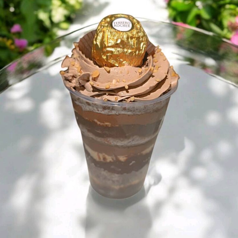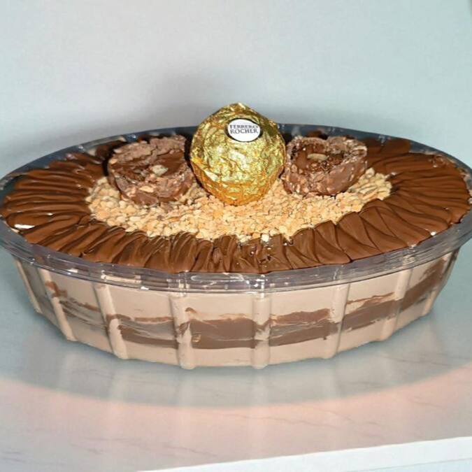 Massa de Chocolate com Delicioso Recheio de Ferrero, Finalizado com Chantilly Premium de Chocolate e Bombom Ferrero Rocher Original