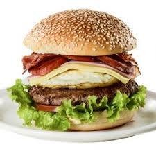 Pão, hambúrguer, ovo, frango, calabresa, bacon, queijo, presunto, milho, ervilha, alface, tomate e maionese