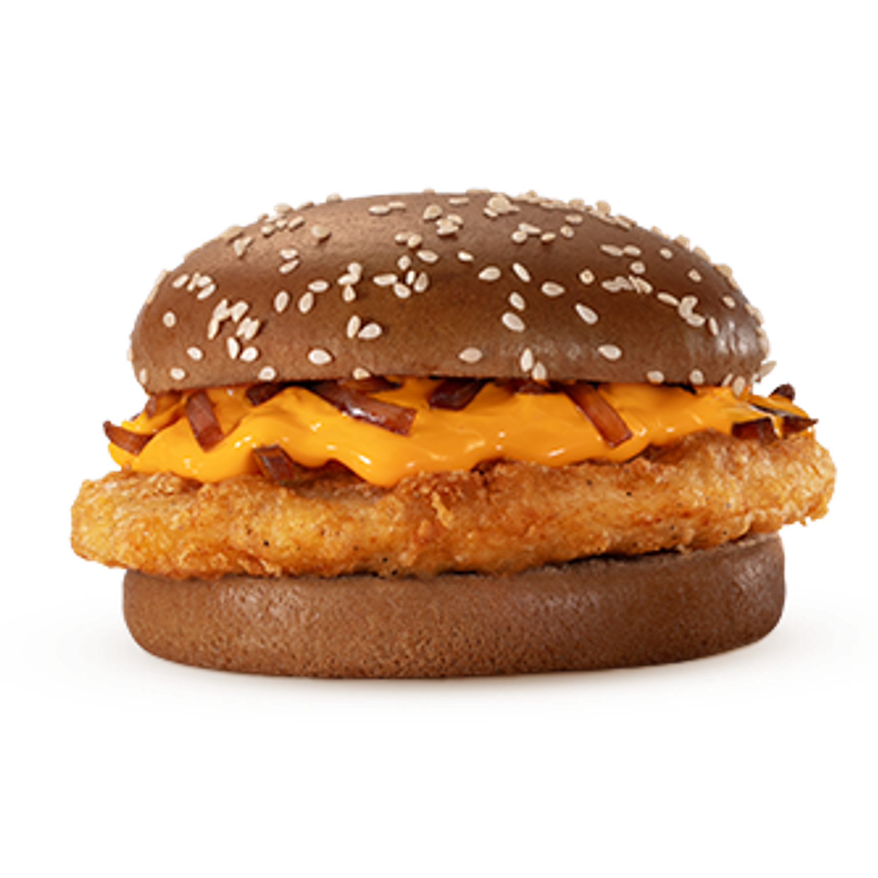 Composto por pão tipo brioche com batata, o novo molho Ranch (um delicioso molho emulsionado à base de especiarias e creme de leite), bacon em fatias, alface americana, tomate e carne 100% de peito de frango, temperada e empanada, acompanhamento e bebida.