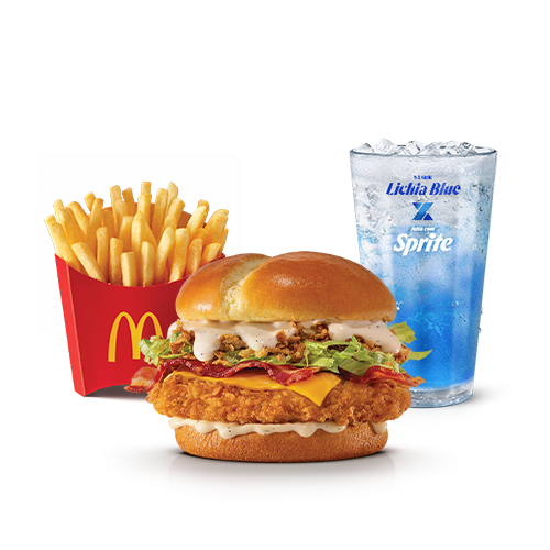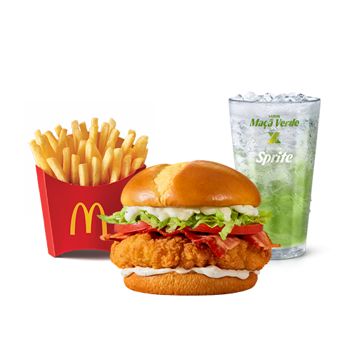 Composto por pão tipo brioche com batata, o novo molho Ranch (um delicioso molho emulsionado à base de especiarias e creme de leite), bacon em fatias, alface americana, tomate e carne 100% de peito de frango, temperada e empanada, acompanhamento e bebida.