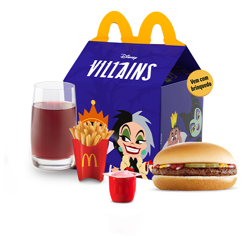O McLanche Feliz acompanha sanduíche cheeseburguer com tomatinho ou McFritas como acompanhamento, uma refrescante bebida e Petit Suisse do Méqui como sobremesa. Brinquedo sujeito a disponibilidade de estoque por restaurante. Confira informações nutricionais em: mcdonalds.com.br/cardapio/ mclanche-feliz. Imagem Meramente Ilustrativa.
