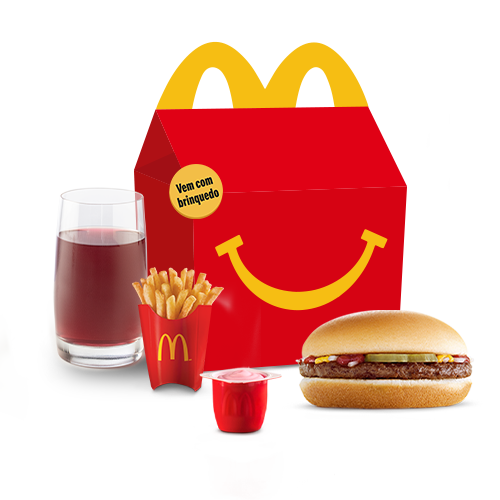 O McLanche Feliz acompanha sanduíche cheeseburguer com tomatinho ou McFritas como acompanhamento, uma refrescante bebida e Petit Suisse do Méqui como sobremesa. Brinquedo sujeito a disponibilidade de estoque por restaurante. Confira informações nutricionais em: mcdonalds.com.br/cardapio/ mclanche-feliz. Imagem Meramente Ilustrativa.