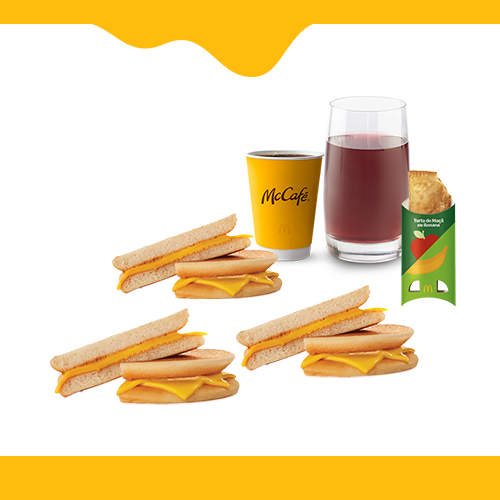 Composto por pão sem gergelim e duas fatias do delicioso queijo processado sabor cheddar. E uma bebida de sua preferência.