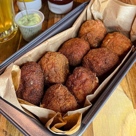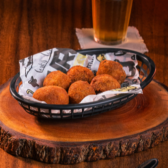 6 Unidades de Bolinho de Linguiça Toscana Recheados com Queijo Mussarela.