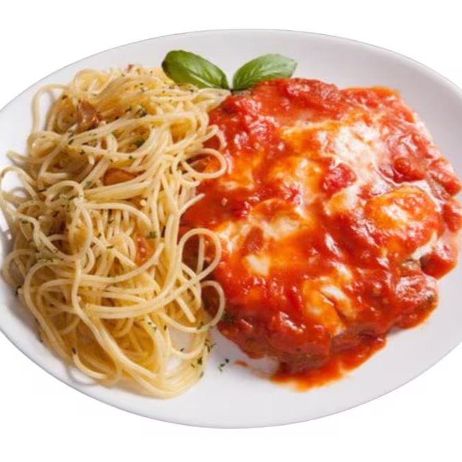 Espaguete ao Alho e Óleo . Frango a Parmegiana ( Empanado na farinha Panko )(Atenção) --> Não Fazemos Alteração Via Chat, Qualquer Alteração Em Seu Pedido Terá Que Ser Feito Antes De Finalizar O Mesmo.