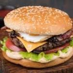 Pão, hambúrguer de alcatra, ovo, frango, calabresa, bacon queijo, presunto, milho, tomate e alface.