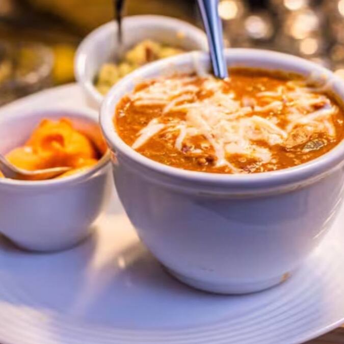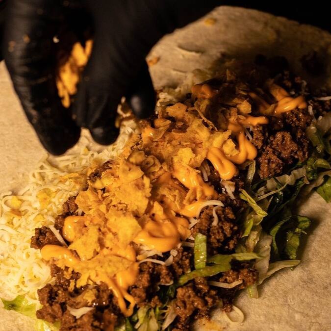 Tortilha de trigo recheada com chilli de carne com feijão, mussarela, alface americana, geleia de pimenta e cheddar.