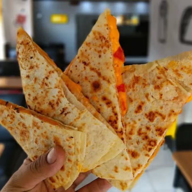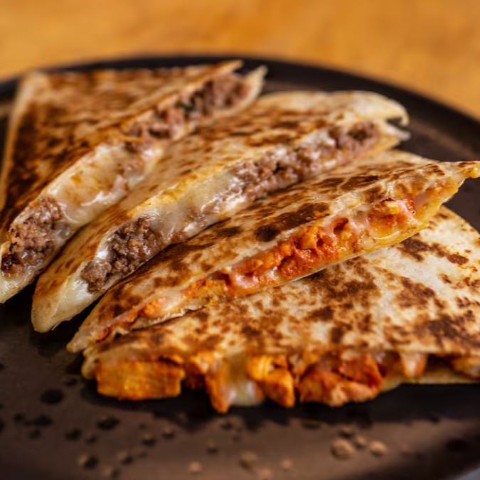 8 fatias de quesadillas recheadas com sua proteína favorita e duplo queijo.