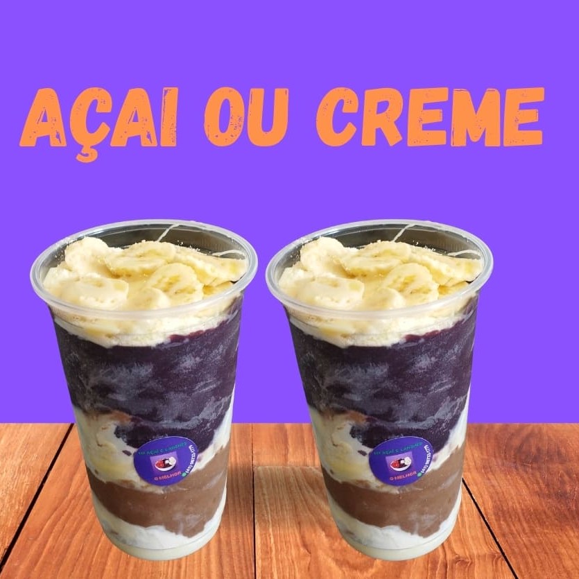 Delicioso açaí ou Creme, caso peça dois sabores será feito como na Foto, meio a meio em todos copos, se necessário coloque uma observação.