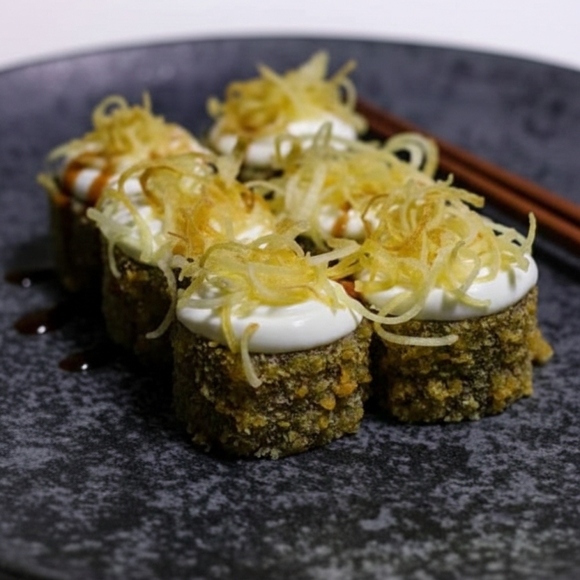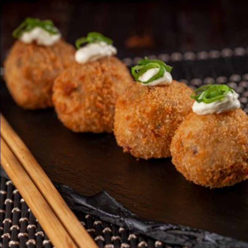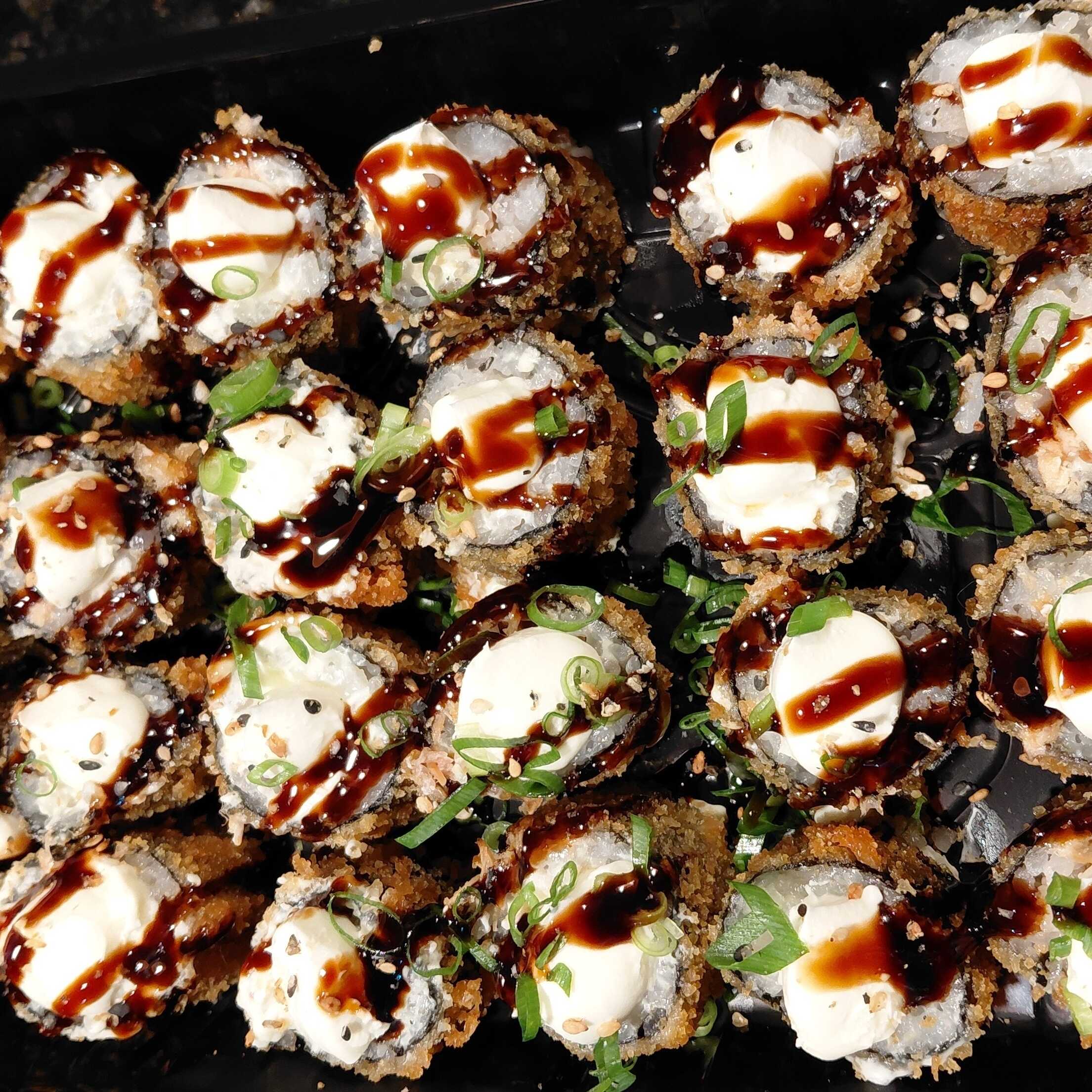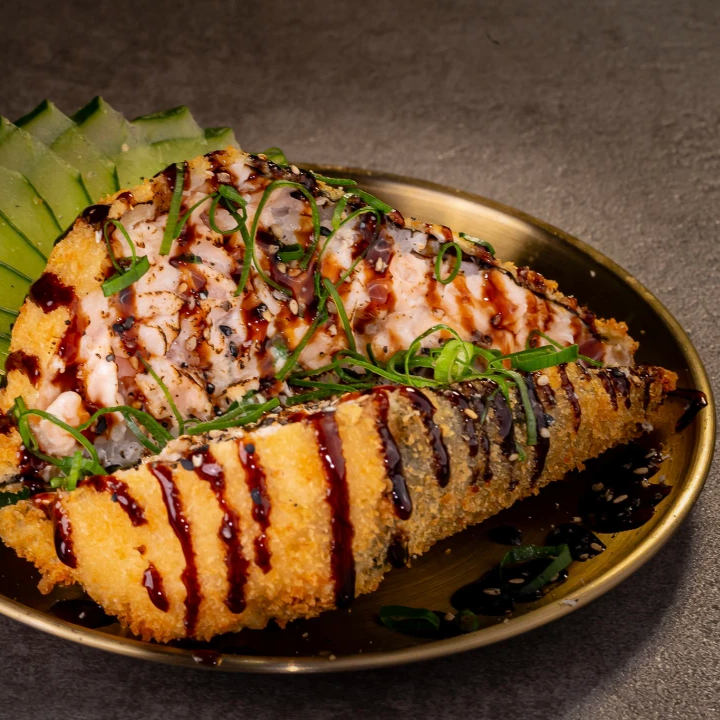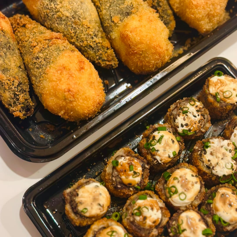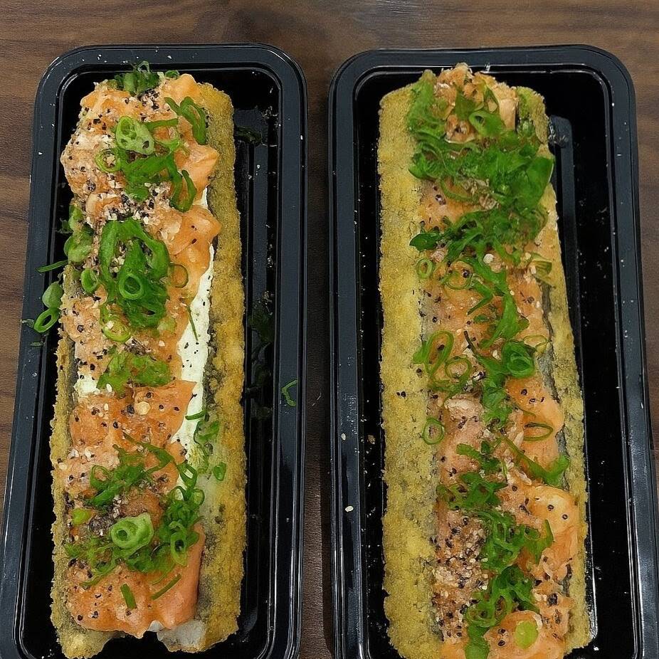 Sushi fritos 2 hashi 3 shoyo 5 tare bem servido