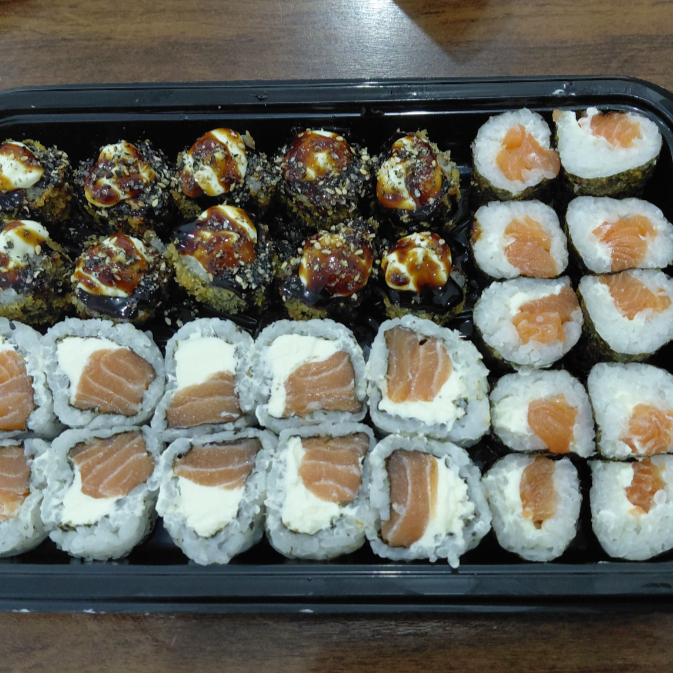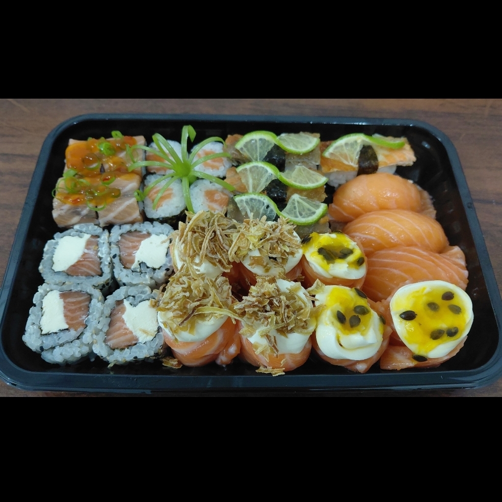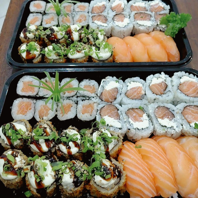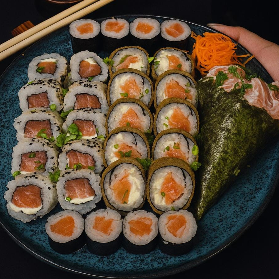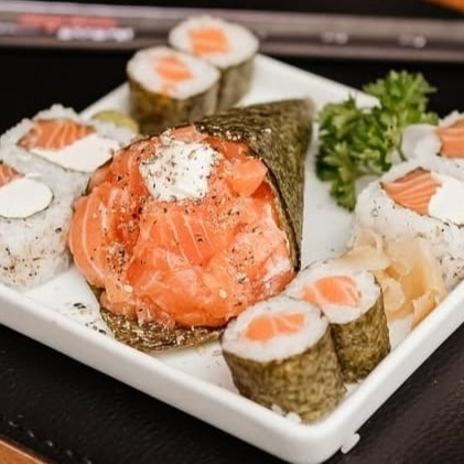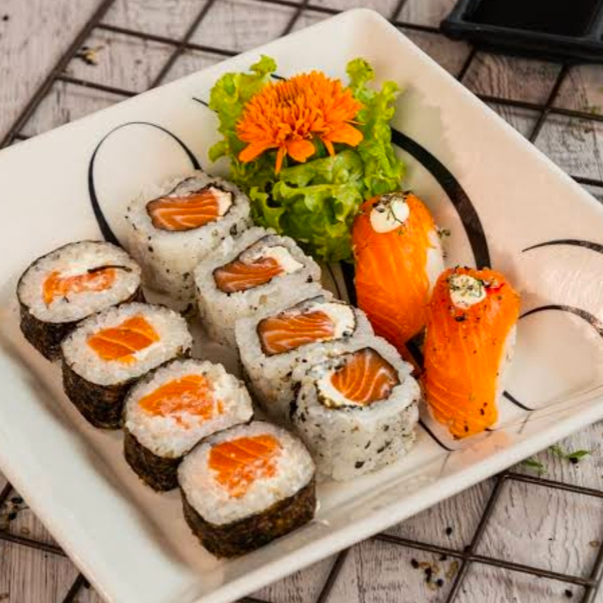 4 uramaki Filadélfia 4 hossomaki 2 niguiri de Salmão