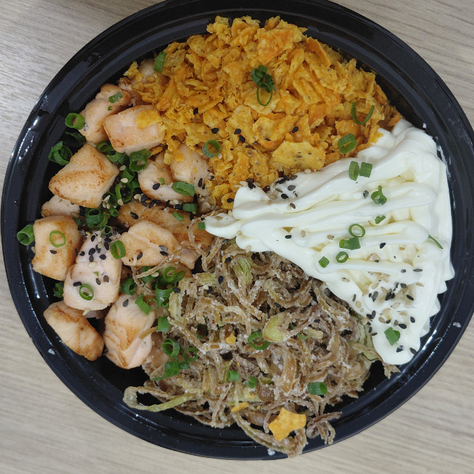 Arroz salmao e crean chesse misturado e cebolinha copo 300gm