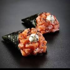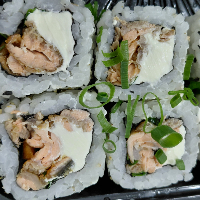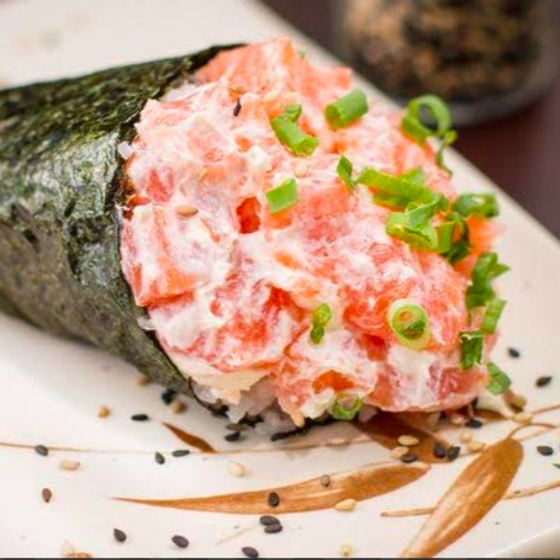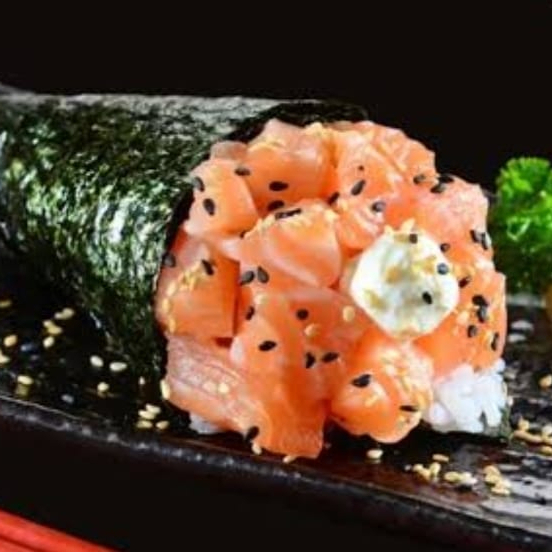 Temaki nori arroz japonês salmao e crean chesse misturado e cebolinha