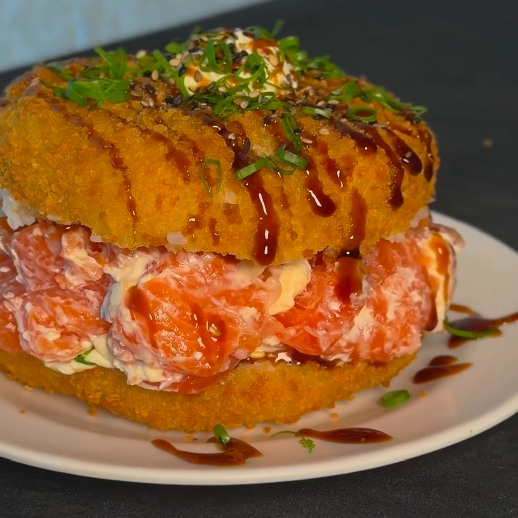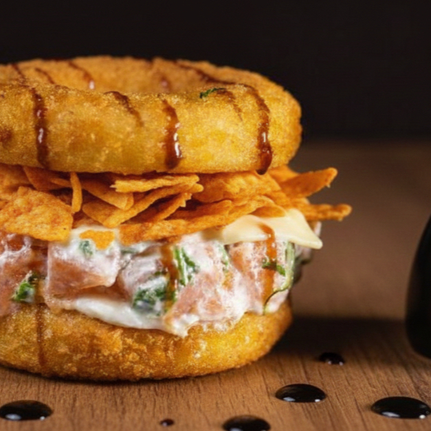 Salmao kani sunomono cebola roxa manga doritos e crean chesse