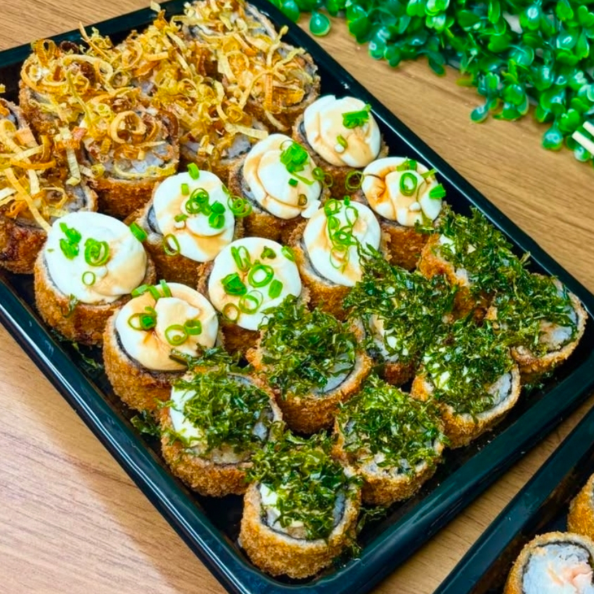 10 uramaki Filadélfia 10 uramaki c doritos 10 uramaki skim c crispe de couve 10 hossomaki shim 10 hossomaki de Salmão 10 hot filadelfia