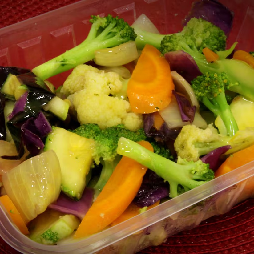 Legumes (brócolis, couve-flor e cenoura) uma combinação perfeita que harmoniza muito bem com azeite ou manteiga. Serve 2 pessoas