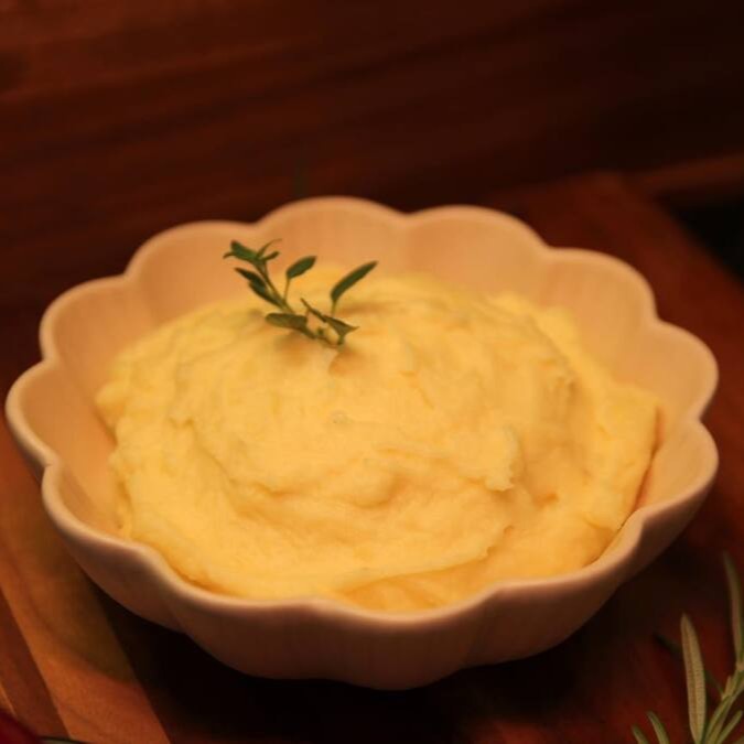 Pure de batatas caseiro, com leite e manteiga. Serve 2 pessoas